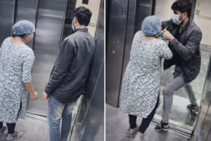 لفٹ میں خاتون سے چین چھین لی گئی، ویڈیو وائرل